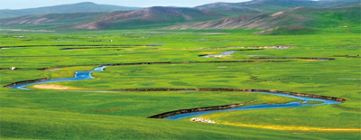 綠夏:風吹草低見牛羊,茵茵綠草搭配藍天白雲是蒙古的標誌。