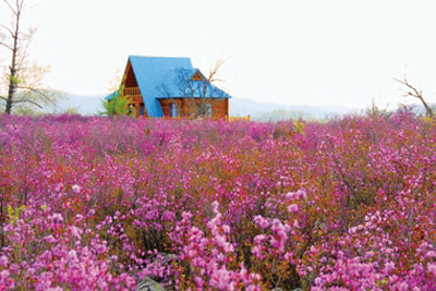 紅春: 呼倫貝爾市花─ 紫紅色杜鵑,襯著未消融的白雪份外美麗。