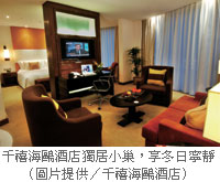 處清靜之地,陽光下讀讀久違的文字,夜晚邀一兩個摯友小酌一番,在寒冷季節寄予一份溫暖的情趣。雅致的千禧海鷗酒店等待的就是那些希望躲避喧囂尋求自我空間的朋友們。