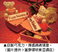 人生中有很多美好的事物,愛情是其中之一;愛情中有很多甜蜜,巧克力是其中之一。富豪環球東亞酒店在情人節到來之際,特別為戀人們準備了精美的巧克力,醇厚香滑的滋味透過味蕾,繚繞心頭,傳遞那綿綿不斷的愛意。