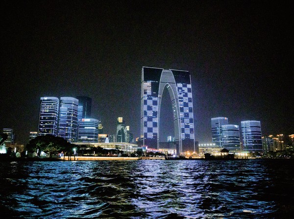 金雞湖為國家級5A景區,位於蘇州工業園區,水域面積廣大,湖畔無論日夜均有不同怡人風光。沿著湖邊有蘇州鳥巢、月光碼頭、圓融時代廣場、蘇州國際博覽中心等著名建築環繞。