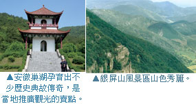 銀屏山風景區坐落於風光秀麗的巢湖南岸,素以奇花、奇樹、奇石聞名遐邇。從俗諺「榖雨三朝看牡丹」可看出在中國民間有榖雨時節賞牡丹的習俗,這一習俗已綿延了數千年,而巢湖銀屏山因為有一株白牡丹,便有了一年一度的牡丹觀賞節,眾所周知,牡丹是我國傳統的名花,又稱「榖雨花」、「富貴花」,她以特有的國色天香號稱「花中之王」,在中國有著「洛陽牡丹甲天下」的封號。而銀屏牡丹貴在一個「奇」字上,奇是她生長在離地面30公尺懸崖峭壁的石縫中,歷經千年風雨,獨具靈性,每到春天嫣然盛開。它以超凡脫俗清雅婉約綻放在人間。景區還根據時令推出豐富有趣的農家採茶採果活動。