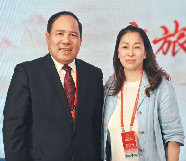 ▲(左起)江西省文化和旅遊廳黨組成員兼副廳長周建文、中華兩岸旅遊產學發展協會理事長(三越旅行社董事長)齊雁蘋。
