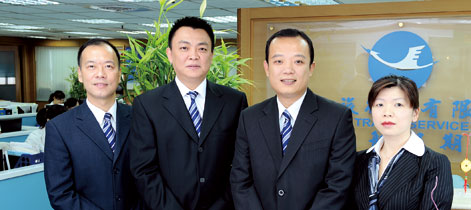 5. 廈航旅行社總經理許文聰(右2)與核心團隊合影,廈航旅行社出境部特別助理陳泓達(左1)、副總經理屈湘平(左2)、入境部副總經理蔡若喬(右1)。