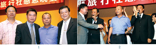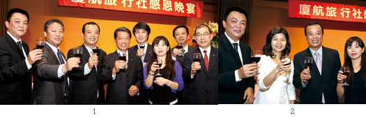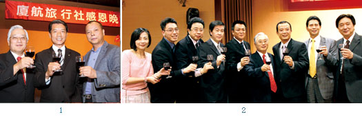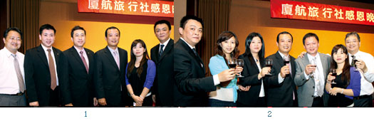 1. (前排左起)廈航旅行社副總經理屈湘平、華信航空營業經理周育志、廈航旅行社總經理許文聰、華信航空公司總經理陳明堂、廈航旅行社入境部副總經理蔡若喬;(後排左起)華信航空營業部主任莊淵清、營業部主任陳吉祥。
