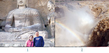 1.西南旅行社團體部經理陳秀雲(左)與總經理李逸合影於雲岡石窟。