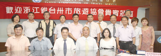 為促進台北市與浙江省台州市兩地旅遊市場的互動及旅遊發展,台州市旅遊局局長張正煜此次率團來台參訪,並於8╱24拜會北市旅行公會,雙方簽署合作意向書,內容包括雙方以市場互動、遊客互送、信息互通、優勢互補等原則下,達成包括市場開發、信息交流、旅遊促銷、企業合作等面向的合作。