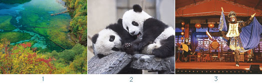 景點的部分則集四川之大全, 包括九寨溝、峨嵋、黃龍、樂山、熊貓基地、洛帶古鎮、寬窄巷子、金沙遺址、黃龍溪古鎮…等,並安排欽膳齋藥膳、成都名小吃、茂縣羌寨風味、麻辣火鍋、川菜風味…等風味餐食。