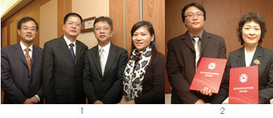 2.亨達旅行社董事長翁文彬(左)與浙江風光國際旅行社董事長桂建軍簽訂合作協議。