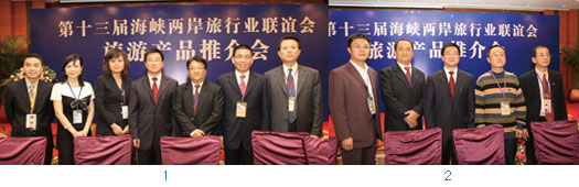 1 .山富國際(右2)、台灣快樂(右3)、東森等旅行社(左2)與貴州中國青年(右1)、貴州海外總公司(左3)、貴州中國國際(左1)等旅行社簽署兩岸旅客互送協議書,並且在貴陽市旅遊局副局長葛宇菁(中)的見證下完成。