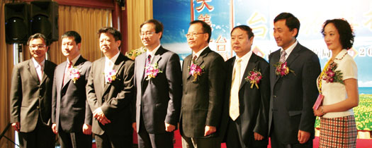 青海省旅遊局副局長徐浩(右2)、青海賓館旅遊集團董事長郭紅萍(右1)、台北市旅行商業同業公會監事會召集人李南山(右4)、中華兩岸旅行協會理事長許晉睿(左3)、青海省西寧機場副總經理鄒展業(左2)、中華航空台北分公司客運營業部副理羅俊英(左1)。