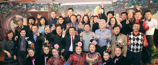 ▲凱里亮歡寨的酸湯魚頭在當地相當知名,在用餐的同時也感受到苗族歌舞的熱鬧歡騰,此次台灣業者也在此合影紀念。