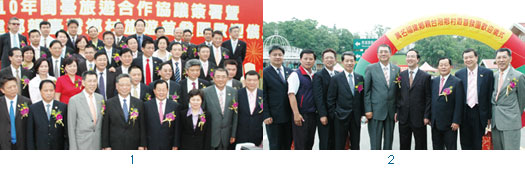 1.閩台旅遊合作協議全體代表。2.(左起)行家旅行社董事長海英倫、苗栗縣旅遊局局長徐文達、北市旅行商業同業公會理事長許禓哲、華信航空總經理陳明堂、台灣旅行商業同業公會總會理事長姚大光、福建省旅遊局副局長陳揚標、苗栗縣縣長劉政鴻、旅行公會台灣省聯合會理事長蕭博仁、小人國主題樂園董事長朱鍾宏。