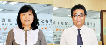 1.喜鴻旅行社大陸線協理郭佳。2.喜鴻旅行社大陸線控副理張家鵬。