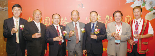 ▲(左起)雅安市人民政府副市長黃劍東、台北市旅行商業同業公會副理事長丁萊、雅安市人大常委會主任徐孟加、旺旺中時媒體集團董中視事長林聖芬、四川省旅遊局局長張谷、台灣區觀光協會聯合會理事長許建章、阿里山鄉農會民眾服務社理事長許榮鎮。