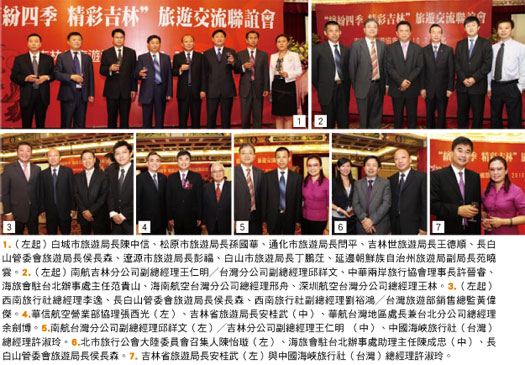 觀光局副局長謝謂君則表示,2010年台灣前往吉林的旅客達到32,000人次,其中1~5月就成長了22.86%,今年可望突破4萬人以上。而在吉林赴台旅客方面,從2009年開放迄今,已有10,432人次來台,在今年1~6月就佔了6,302人,未來發展潛力極大。