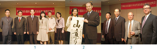 2.中國康輝旅行社集團董事長李繼烈(右)接受鼎運旅行社董事長陳怡璇(左)致贈字畫。