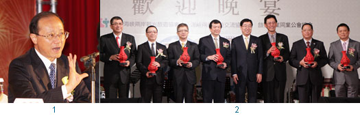 1.中國國家旅遊局長邵琪偉。2.中國國家旅遊局副局長杜江(右4)致贈紀念品給台灣七大公協會。