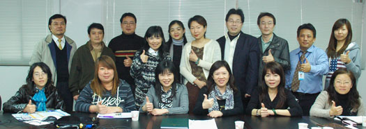 (前排左3起)復興航空營運處客運營業部業務副理盧美惠╱業務代表蔡佩君與「復興寰遊PAK」歡迎同業踴躍加入銷售,一起創造營運利多。