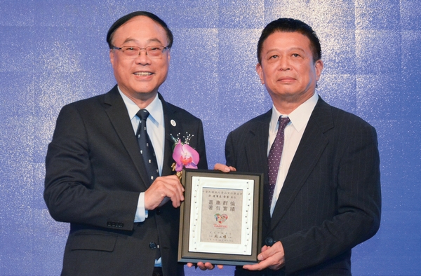 ▲(左起)交通部觀光局局長周永暉致贈感謝牌給予第10屆旅行業品質保障協會理事長許晉睿。