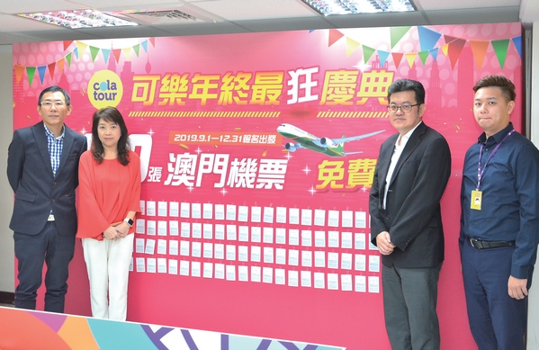 ▲由可樂旅遊產品系統副總經理陳政宏,於總公司抽出第1波100張澳門來回機票。