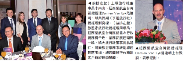 ▲紐西蘭航空台灣區總經理Damien Van Eyk范達明(左2)代表受獎。