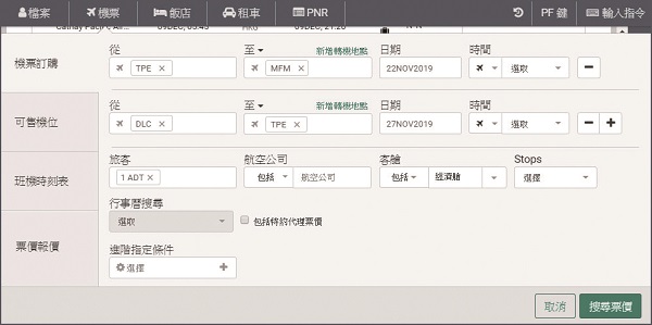 一、豐富圖資填表查詢票價,立即回覆250組報價(未來含NDC票價)。可以單張或多張機票計算,提供有位最低票價。