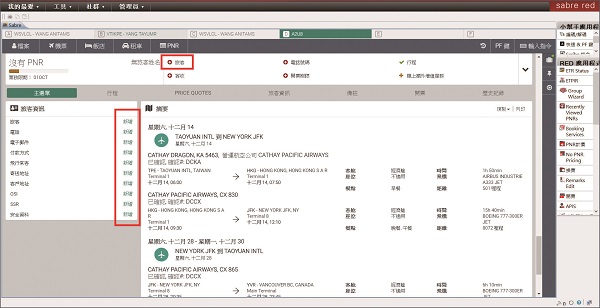 六、旅程摘要預訂行程段後,PNR欄顯示進度及遺漏要素智慧提醒讓您知。新手免記指令也能較以前快26%時間完成訂位。