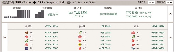 四、鎖定航班航班搭配好簡單鎖定航班算差價。排除僅能低價但時間不佳組合,混搭航空票價、行李組合。