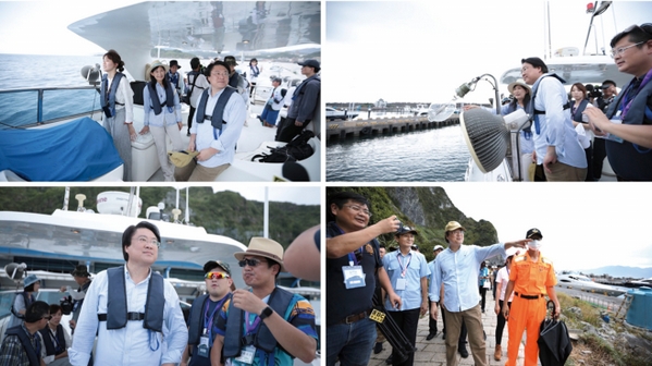 除了在碧砂漁港完成啟航儀式,林右昌也特別搭船前往基隆嶼,先為市府、海巡署與崇右影藝科技大學合作新設的「基隆嶼打卡景點」進行揭幕儀式,並特別頒發感謝狀感謝崇右校方運用島上現有資源為基隆嶼新設打卡景點,還以有限的資源及閒置房舍設置藝文空間「小島美術館」,提供陳禹達、葉玉珠、李燕芬、蔡長青、陳代銳、蘇瑜琪、程原愛及連雅綺等藝術家畫作展示空間,將藝術的氛圍帶入基隆嶼,營造島上新亮點。