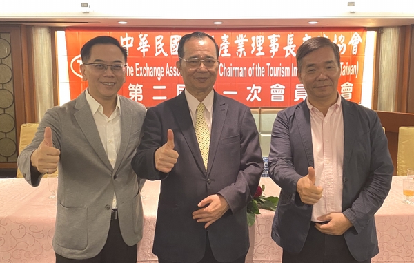 ▲(左起)台北市觀光傳播局專門委員沈永華、觀光產業理事長交流協會理事長蘇乾亮、常務監事吳雁輝。