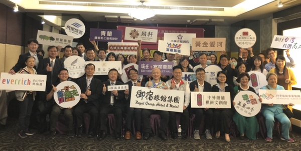 ▲(最前排左3起)雄市觀光協會理事長劉坤福、桃園市政府觀光旅遊局局長楊勝評、桃園市旅行公會理事長呂中豪,與會貴賓及業者合影。