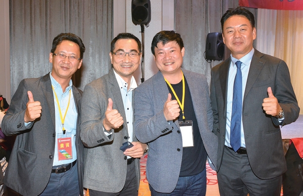 ▲(左起)旅行社聯保聯誼會顧問賴俊傑、顧問林義順、顧問彭培興、主任委員朱永達、顧問陳俊良