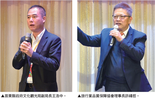 ▲(左起)觀光遊樂區協會理事長廖俊斌、旅行社聯保聯誼會主任委員朱永達、台灣溫泉發展協會理事長李吉田。