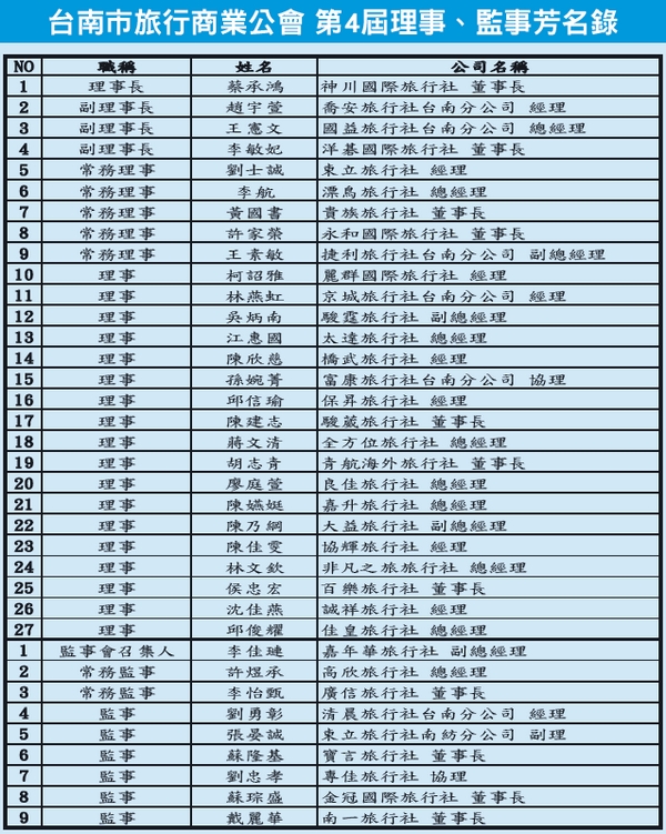 ▲台南市旅行公會第四屆理事長蔡承鴻