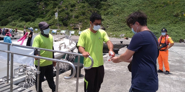 在風景區防疫方面,加強巡查基隆場域及落實防疫措施。基隆嶼每天登島人數及上船人數減半,並落實「名單實聯制」,採梅花座方式,保持社交距離,以維安全。觀銷處曾姿雯處長提醒大家觀光旅遊各項防疫措施全面升級,民眾無論是旅宿、搭乘觀光巴士或是到風景區之際,都應佩戴口罩、勤洗手消毒,配合業者落實各項防疫作為,保持社交距離,以維你我安全。