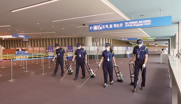 ▲韓國提供讓旅客安心的防疫,如仁川國際機場便按時消毒。