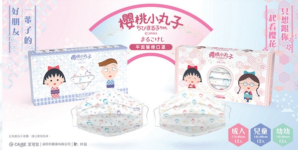 ▲看好IP經濟的盛型,「艾可兒」特別與知名卡通人物「櫻桃小丸子」聯名推出主題口罩。