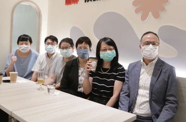 ▲(左起)長榮航空客運營業本部營業部東北亞課課長游億雯、喜鴻集團總裁鄭穆誠、咖啡候機室鄭詩涵、店長鄭宇倫、長榮航空客運營業本部營業部經理卓秋君。