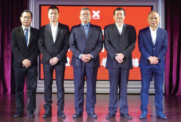 ▲(左起)台中市旅行商業同業公會副理事長陳基源、高雄市旅行商業同業 公會理事長吳盈良、台中市旅行商業同業公會第4屆理事長馮國豐、旅行公 會全國聯合會理事長蕭博仁、副理事長張永成。