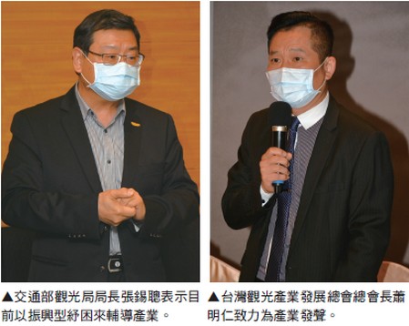 交通部觀光局局長張錫聰表示,非 常欣見在總會長蕭明仁的號召下,邀集 各產業菁英加入,為產業而打拼。面對 已經度過2年多的艱辛時刻,產業都相 當關心的紓困補助,作為主管機關的交 通部與觀光局致力為產業爭取友善環境 營造,然而目前隨著時間流逝,部會的 資源逐漸緊縮,如目前特別預算8,400億 元,振興1.0~5.0之中,已經為產業爭 取300多億元的補助。