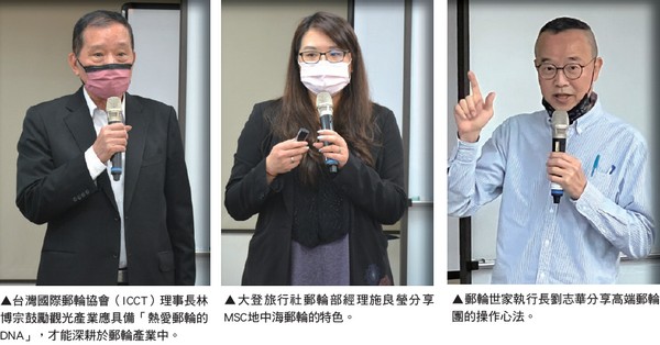 ▲(左起)大登旅行社郵輪部經理施良瑩、台灣國際郵輪協會(ICCT)理事長林博宗、秘書長游世荻。