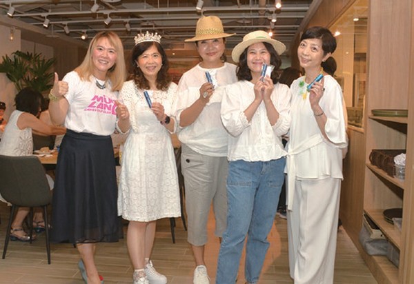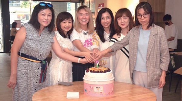 ▲航旅業木蘭隊會長蔡璧如(左3)與木蘭姐妹慶祝8月份壽星生日快樂。
