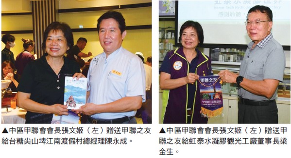 中區甲聯會在8月舉辦2天1夜考察團, 前往嘉義與台南地區。首日行程從熱 浪島出發前往板頭社區,在板頭剪黏藝術 村導覽,以及板頭工藝區巡禮,並與板頭 金牌社區進行座談Q&A,隨後前往嘉義市 大溪社區,由大溪社區導覽介紹水資源循 環,以及米香手作DIY體驗,最後前往入住 江南渡假飯店,體驗渡假村內遊船、房間 導覽後享用晚餐、夜觀生態園區。