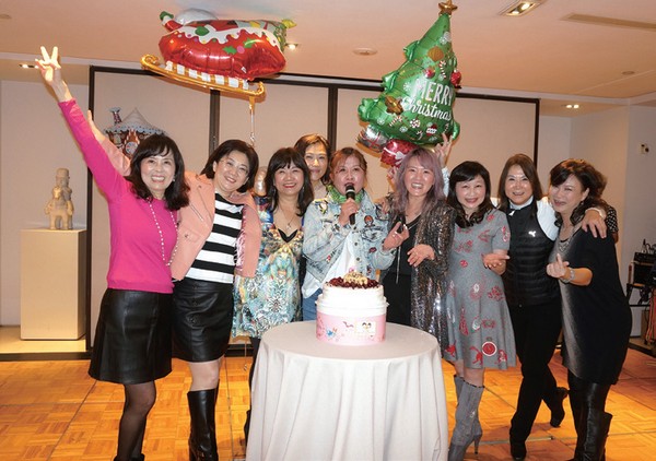 ▲第24屆木蘭隊會長蔡璧如(左4),活動中為12月的壽星慶祝生日快樂。