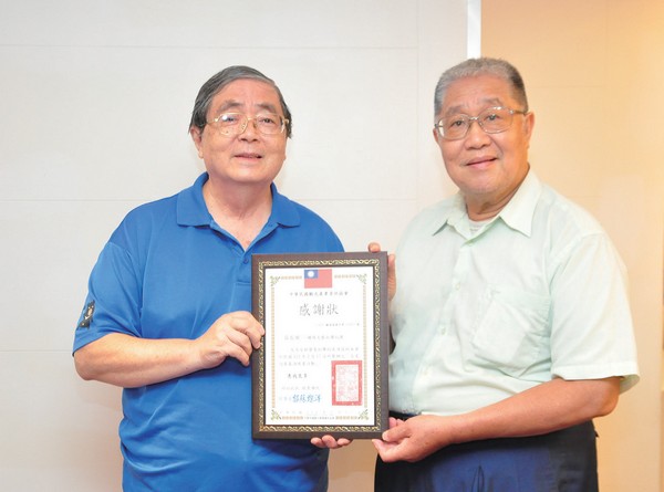 ▲觀光產業資訊協會理事長郭蘇燦洋(左)頒發感謝狀給一縷陽光藝術舞蹈團總裁歐陽台(右)。