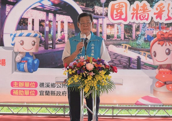 ▲礁溪鄉二龍河堤圍牆彩繪舉行揭牌儀式,現場嘉賓雲集。