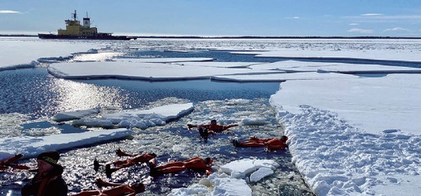 ▲雄獅旅遊帶著旅客在瑞典芬蘭交界的凱米,穿著特製「龍蝦裝」感受無重力樂趣。