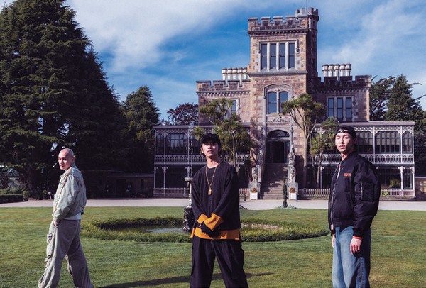 ▲(左起)黃宣、陳柏霖、許光漢來到百年歷史的城堡。