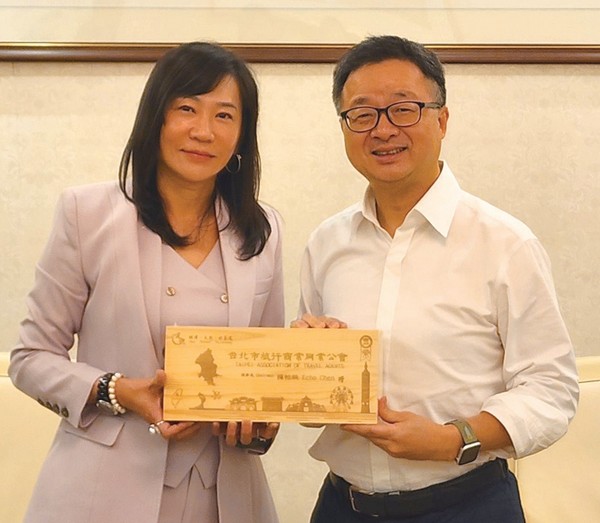 ▲(左起)台北市旅行公會理事長陳怡璇、海峽交流基金會副董事長兼秘書長羅文嘉。
